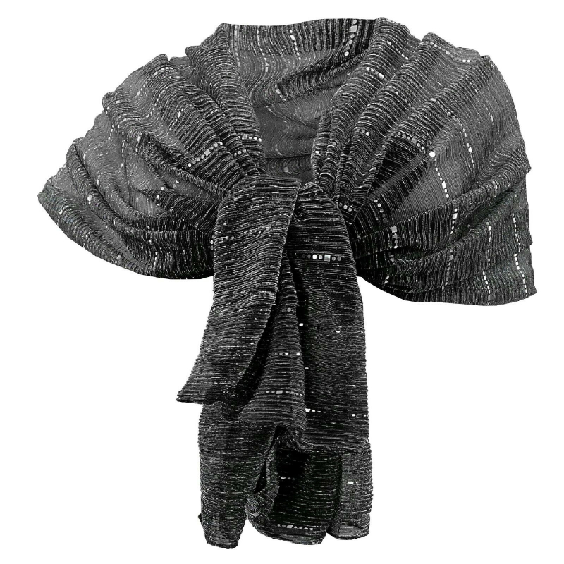 Elegant Pleated SCARF Scarf Shale, Woman Shawl Ceremony Black Silver