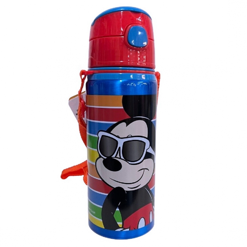 Disney Topolino Summer Borraccia in Alluminio 600ml con Cannuccia Bambini n/termica