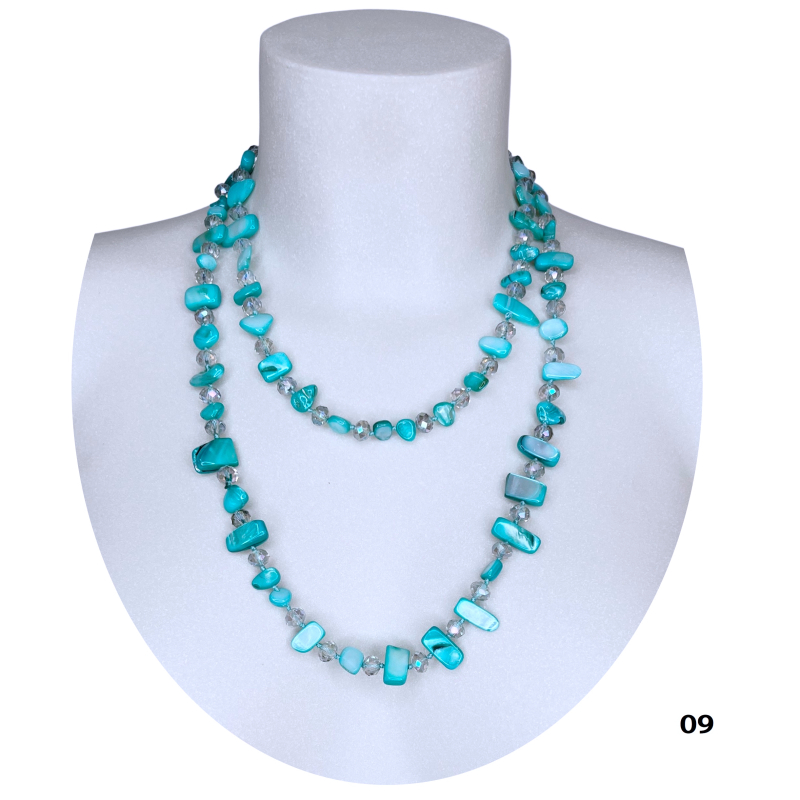 Collana Lunga Madreperla (Blu Mare - perline Trasparenti ) pietre Dure,perle cristalli da donna