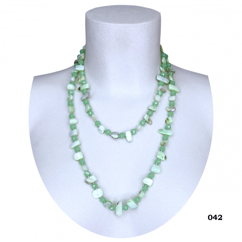 Collana Lunga Madreperla (Verde chiaro - perline opache ) pietre Dure,perle cristalli da donna