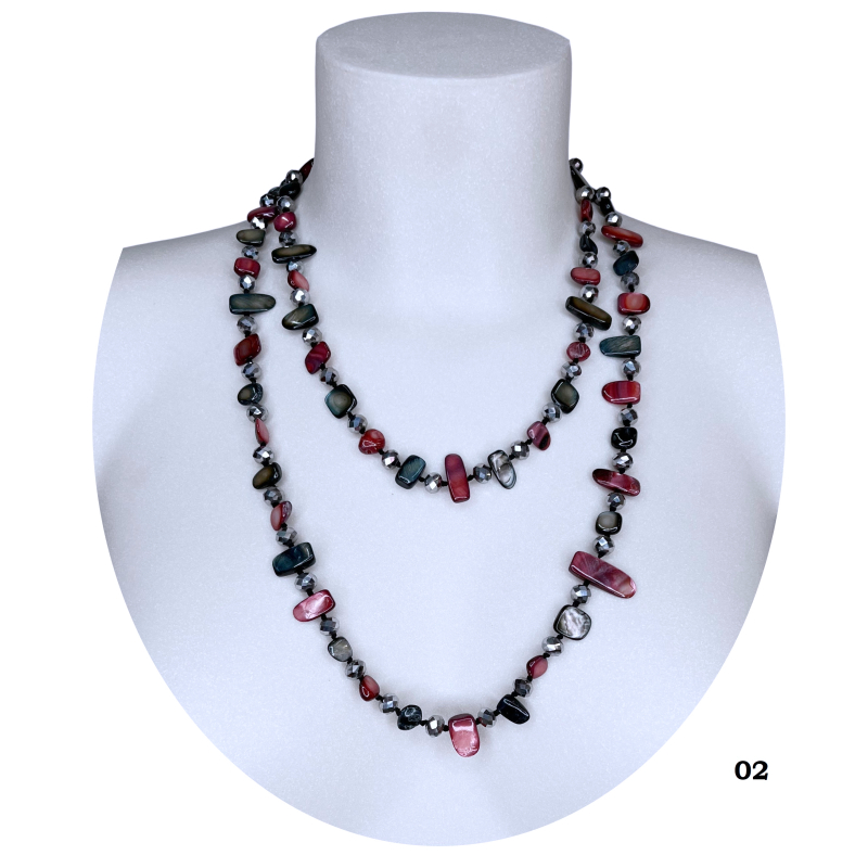 Collana Lunga Madreperla ( Nero Rosso ) pietre Dure,perle cristalli da donna