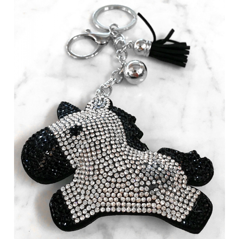Unicorno Portachiavi 3D ,Morbido Ciondolo Borsa Zaino da Donna Argento Nero